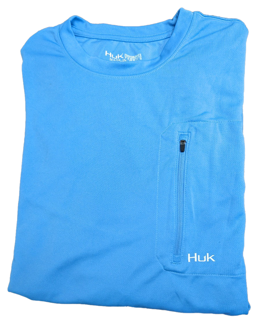 Huk Performance Fishing Sky Blue Zipped Pocket Long Sleeve #144273 Sun Shirt Mens