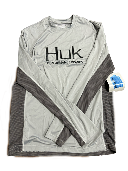 Huk Performance Fishing Hooded Long Sleeve Gray and Brown #144273 Sun Shirt Mens