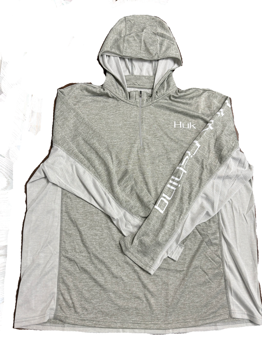 Huk Performance Long Sleeve Gray 1/4-Zip Hooded #144273 Sun Shirt Mens