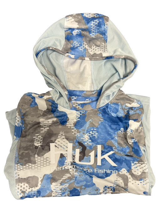 Huk Performance Fishing Camo Hooded Long Sleeve WB&G #144273 Sun Shirt (AS-IS)
