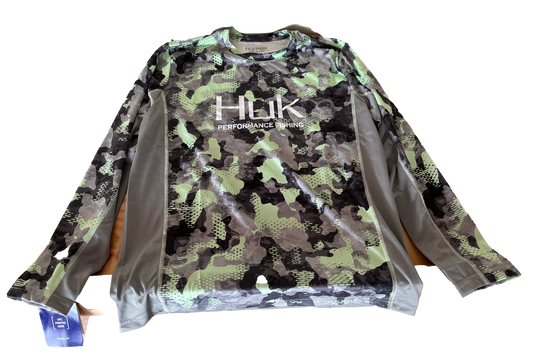 Huk Performance Fishing Camo manga larga verde gris #144273 camisa de sol para hombre