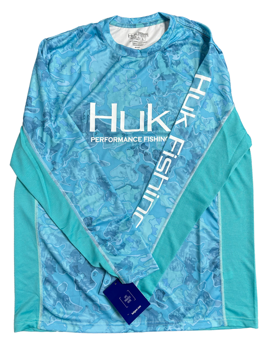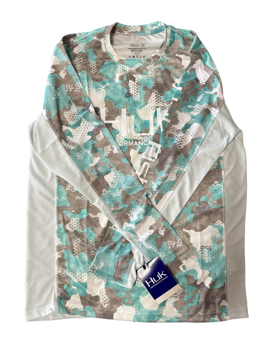 Huk Performance Fishing Camo manga larga Seafoam #144273 Sun Shirt para hombre