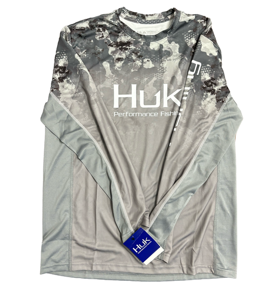 Huk Performance Fishing Camo camisa de manga larga cromada, gris y hielo #144273 para el sol para hombre