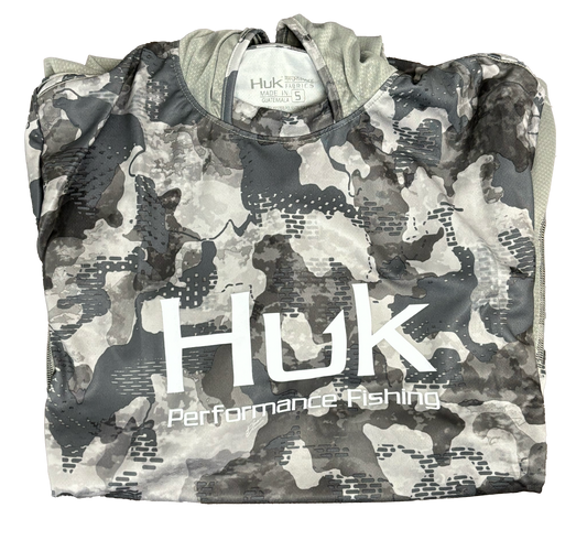 Huk Performance Fishing Camo con capucha de manga larga gris #144273 Sun Shirt para hombre