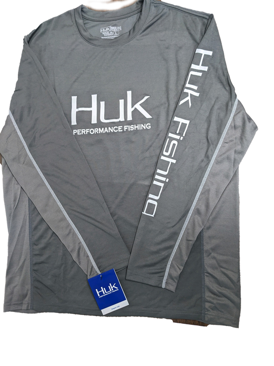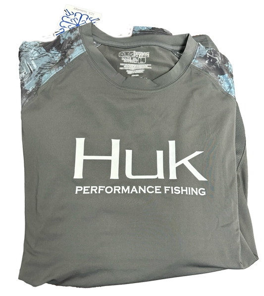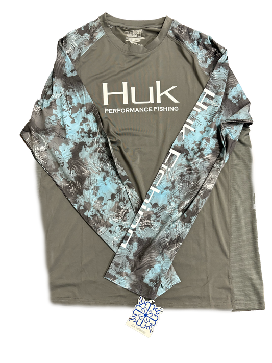 Huk Performance Fishing gris y cobalto manga larga #144273 camisa de sol para hombre
