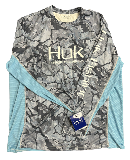Huk Performance Fishing Camo manga larga azul claro #144273 Sun Shirt para hombre