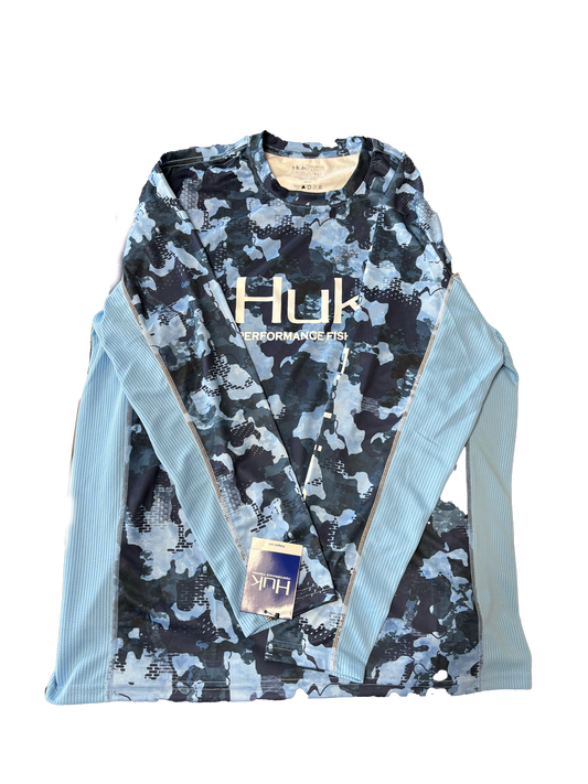 Huk Performance Fishing Cobalt Camo manga larga #144273 Sun Shirt para hombre