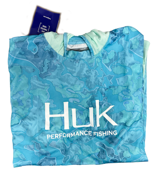 Huk Performance Fishing Camo con capucha de manga larga Seafoam #144273 Sun Shirt para hombre
