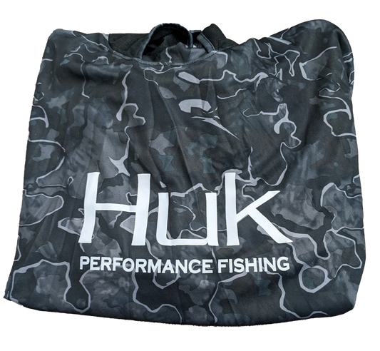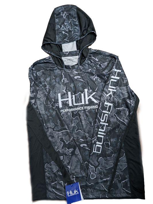 Huk Performance Fishing con capucha negro camuflaje manga larga #144273 Sun Shirt para hombre