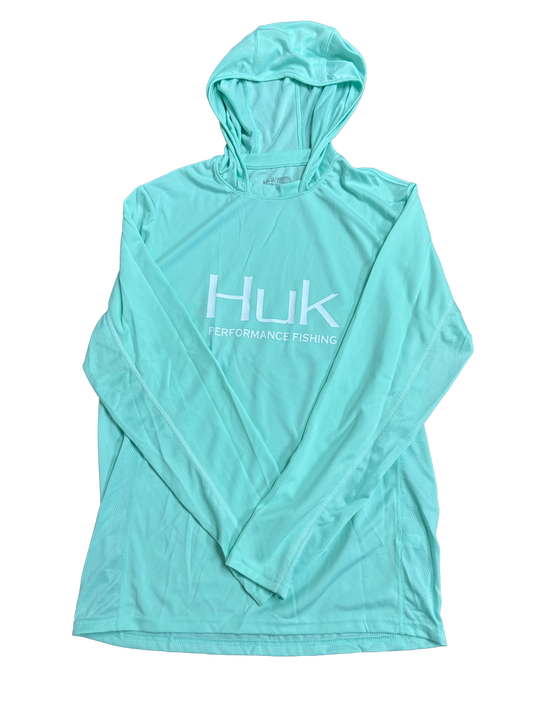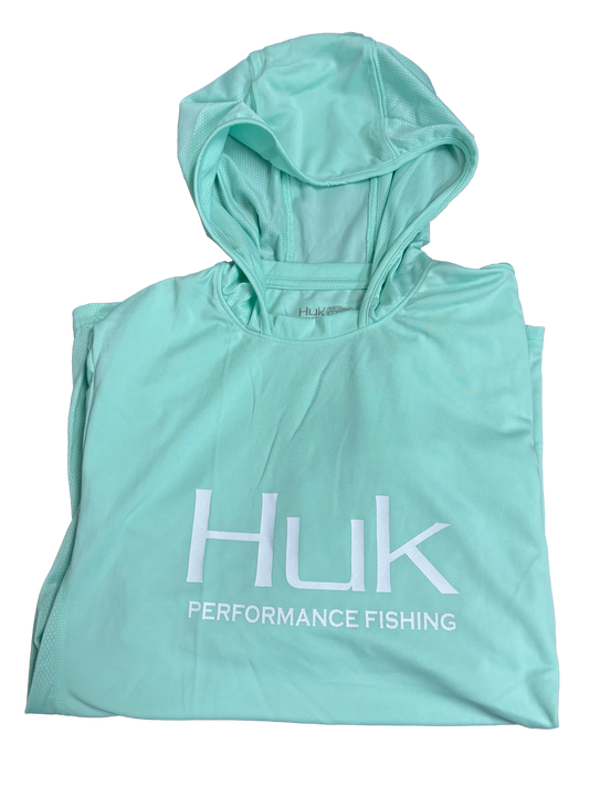 Huk Performance Fishing con capucha aguamarina manga larga #144273 camisa para el sol para hombre