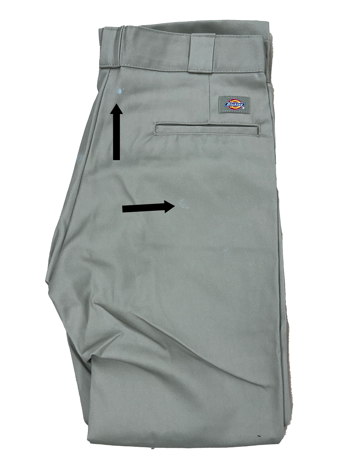 These pants have minor defects, highlighted by the black arrow(s). Therefore, these will be sold "as-is."