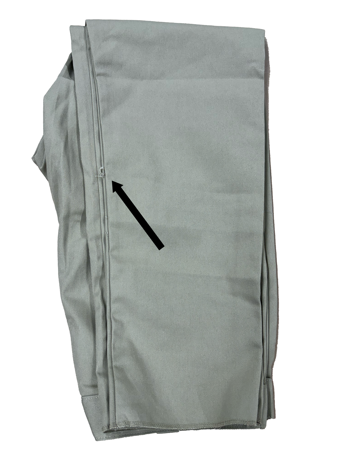 These pants are brand new, but have a minor thread defect, highlighted by the black arrow(s). Therefore, these will be sold "as-is."